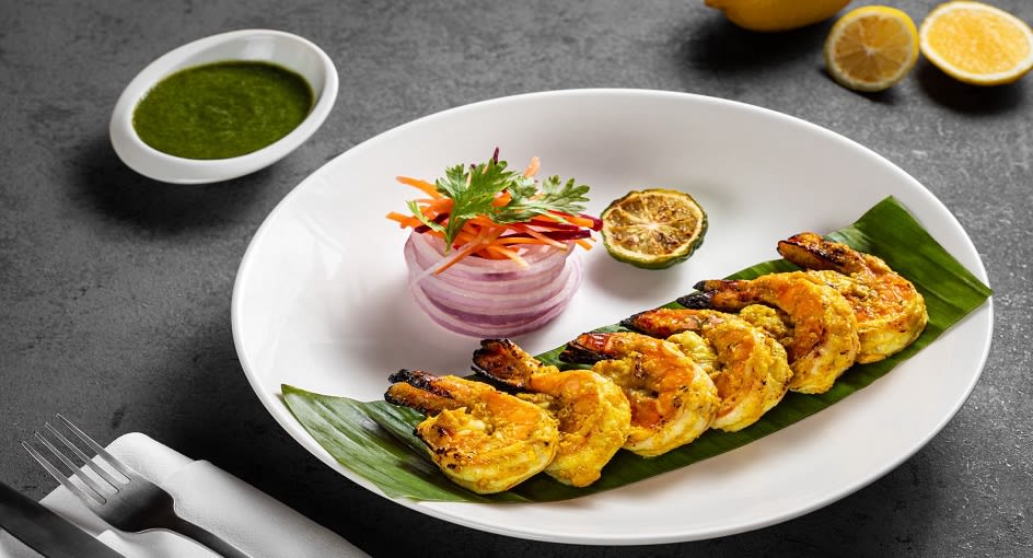 - Tandoori Mix Platter - three pieces of chicken tikka, two lamb chops, two pieces of tandoori salmon, two tandoori prawns