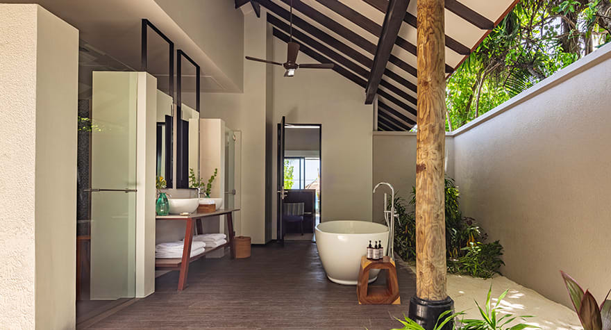 Il tramonto alle Maldive è un momento magico della giornata: un momento per sentire lo straordinario. L'aria è immobile, gli aironi makana si stagliano sulla spiaggia e i colori del cielo sono surreali. Vivete ogni giorno l'incanto con familiari e amici dal vostro patio affacciato sull'oceano nel miglior resort per famiglie delle Maldive.